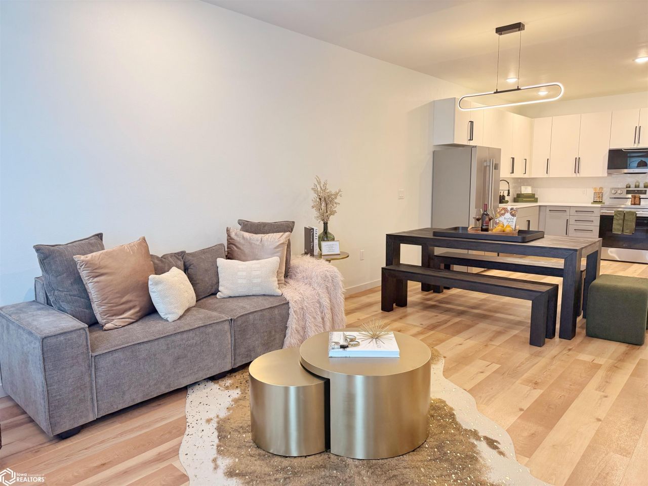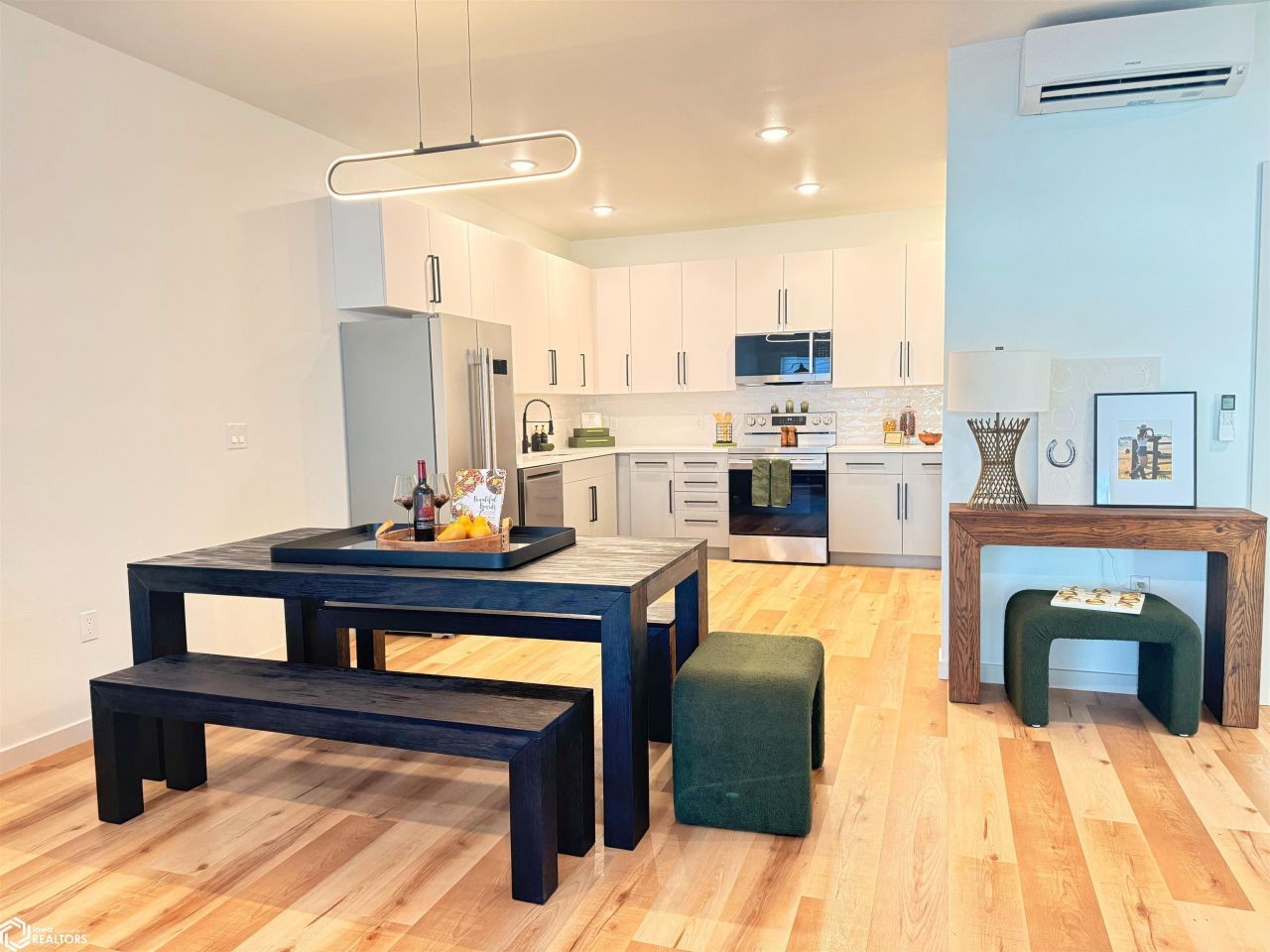 Brand New . Experience modern comfort, energy efficiency, and thoughtful design in these newly constructed two-bedroom townhomes in Sac City. Built with quality craftsmanship and durability in mind, these homes offer true single-level living with no stairs, making them ideal for accessibility, downsizing, or low-maintenance living. The open-concept layout creates a spacious flow between the kitchen, dining, and living areas, providing an inviting space for everyday living and entertaining. Large windows bring in natural light while modern finishes add style and comfort. Designed for accessibility and convenience, these homes feature all main living spaces on one level, allowing easy mobility throughout the home with no steps or stairways. The kitchen features custom cabinetry construction with full ¾' cabinet box construction, ¾' drawer boxes, and soft-close drawers and doors. Beautiful quartz countertops with a full modern backsplash provide durability and elegance, while lighting infrastructure is pre-wired for both under-cabinet and above-cabinet accent lighting. Durable commercial-grade luxury vinyl plank flooring runs throughout the main living areas, offering waterproof protection with a 12 mil wear layer designed for long-term performance. The bathroom includes a custom fully tiled walk-in shower with a sleek sliding barn-door style glass enclosure, providing both style and accessibility. Comfort is delivered through high-efficiency mini-split heating and cooling